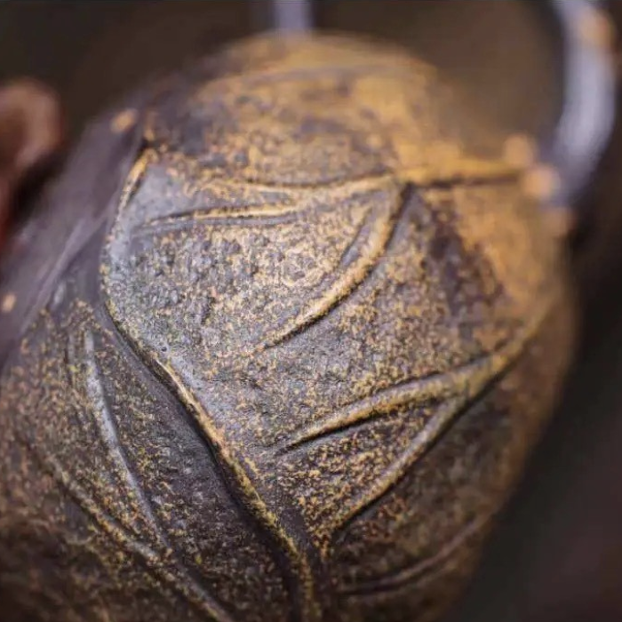 Được làm từ đất tử sa nguyên khoáng tự nhiên, thân ấm có sắc nâu tím ánh vàng cổ kính, chất đất thô mịn và có khả năng lưu hương trà tuyệt hảo. Càng dùng lâu, ấm càng “lên nước” bóng ngọc, cho hương trà sâu và hậu vị tròn đầy.