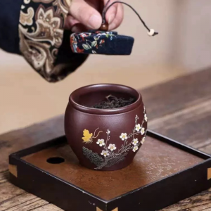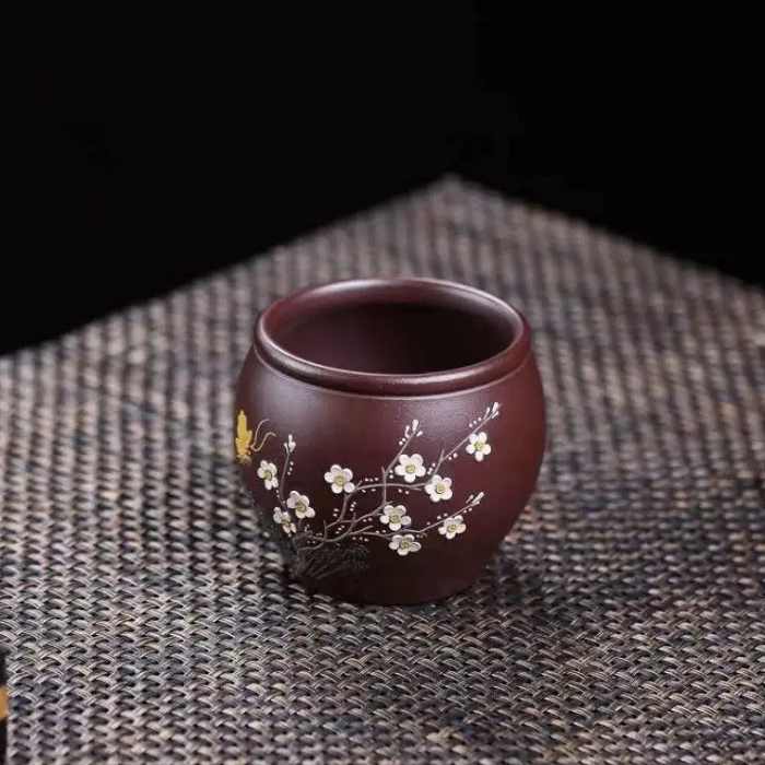 Chén Tử Sa Hoa Mai – Thanh Cảnh Trà Tâm là một tác phẩm nhỏ nhắn nhưng tinh tế, kết tinh từ đất tử sa nguyên khoáng vùng Nghi Hưng – loại đất nổi tiếng bởi khả năng giữ nhiệt và lưu hương trà tự nhiên.