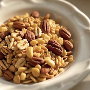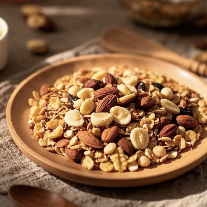 Hạt Dinh Dưỡng Mix là sự kết hợp của nhiều loại hạt chất lượng: hạnh nhân, óc chó, mắc ca, hạt điều cùng yến mạch rang giòn. Các loại hạt được tuyển chọn, rang chín vừa để giữ nguyên hương vị bùi giòn và hàm lượng dinh dưỡng.