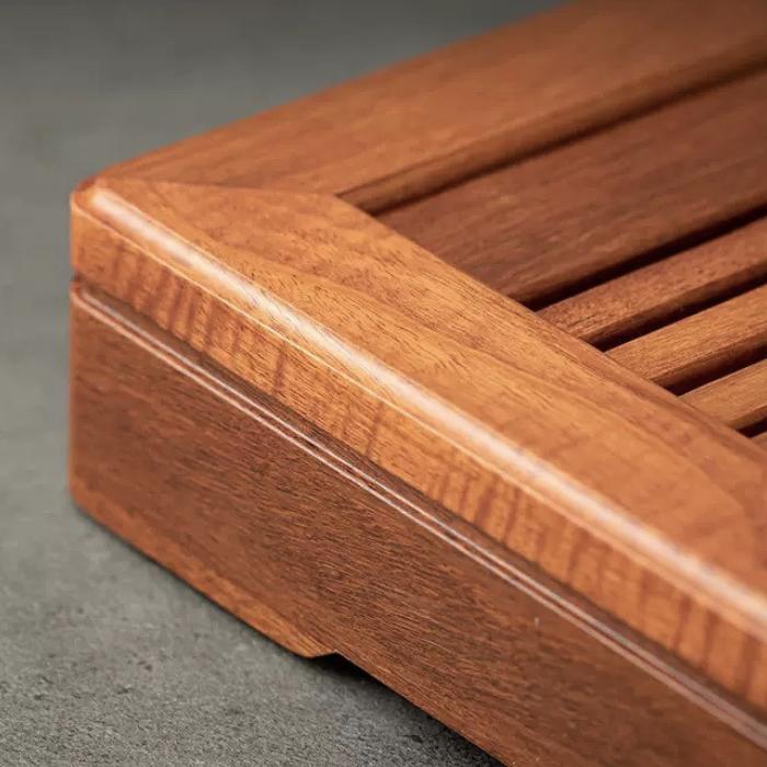 Được làm từ gỗ Cẩm Lai tự nhiên nguyên khối, khay có độ bền cao, vân gỗ sắc nét và hương thơm nhẹ đặc trưng – biểu trưng cho sự sang trọng và tinh tế.