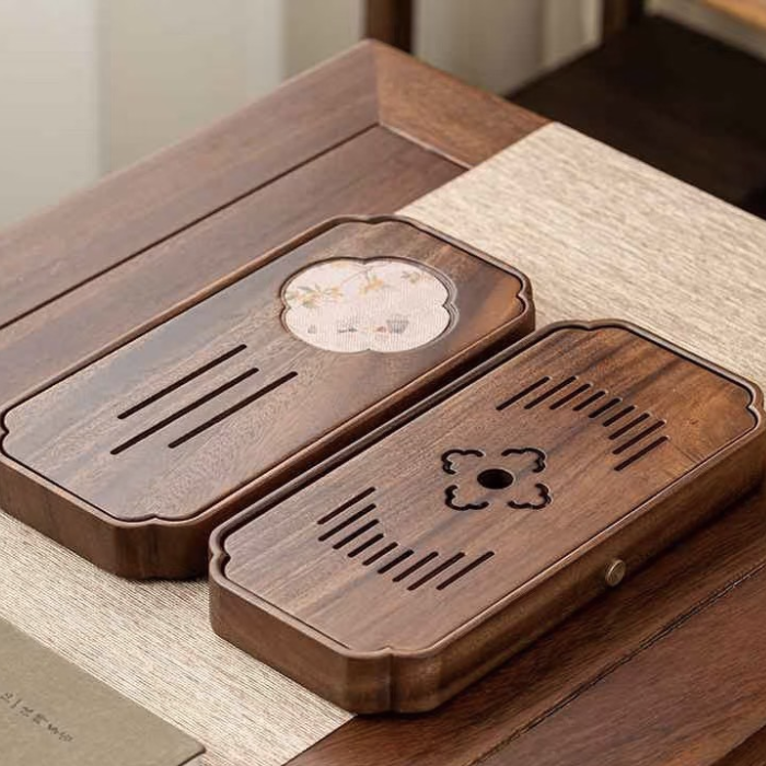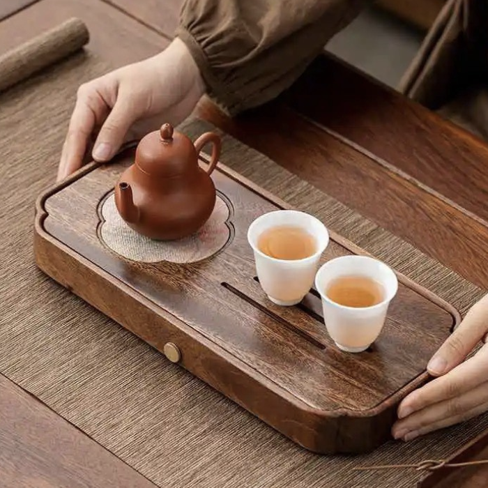Khay có khay hứng nước inox nhỏ ẩn bên dưới, dễ tháo rời vệ sinh, đảm bảo độ bền và tính tiện dụng cho người dùng. Kích thước gọn nhẹ, phù hợp dùng trong không gian trà cá nhân, bàn trà nhỏ hoặc các buổi thưởng trà thân mật.