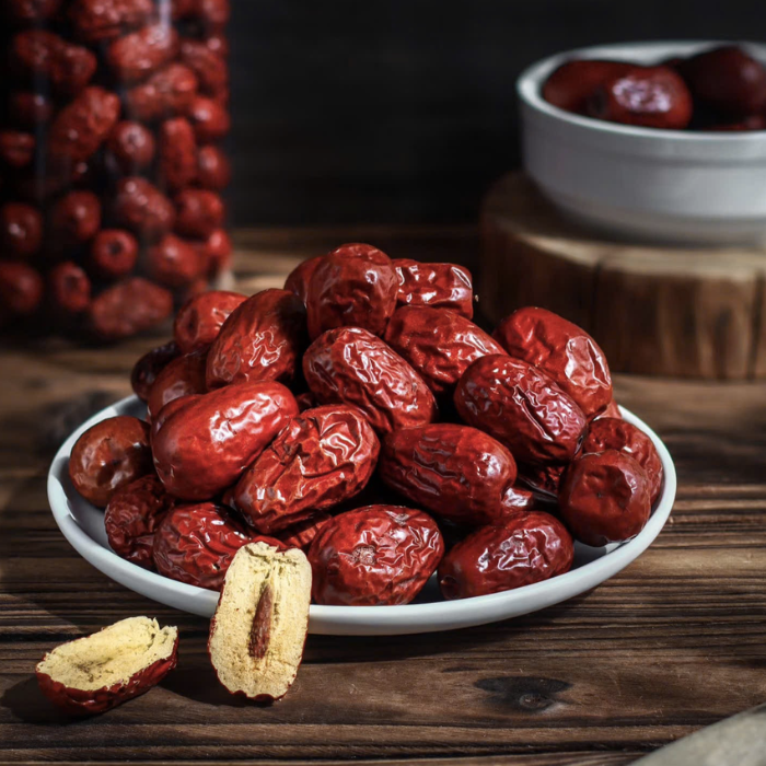 Táo đỏ Tân Cương được tuyển chọn từ vùng nguyên liệu khí hậu khô lạnh và biên độ nhiệt lớn, giúp trái táo phát triển đường tự nhiên cao, ruột dày và mùi thơm đặc trưng. Bề mặt quả hơi nhăn tự nhiên, không tẩm đường, không chất bảo quản, giữ được vị ngọt thanh và dưỡng chất nguyên bản.