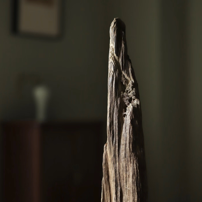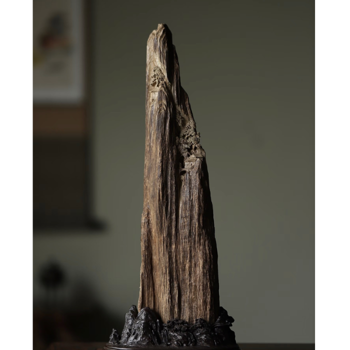 Đế gỗ được làm thủ công, tôn dáng khối trầm như ngọn núi trầm mặc, tượng trưng cho sự vững vàng, thịnh vượng và cân bằng phong thủy. Đây không chỉ là một món trưng bày cao cấp, mà còn là một biểu tượng của tĩnh tâm và năng lượng thuần khiết – rất phù hợp cho người chơi trầm, người yêu không gian thiền định, hoặc những ai tìm kiếm sự cân bằng trong cuộc sống hiện đại.