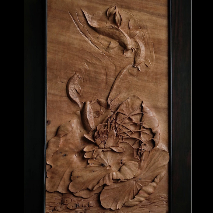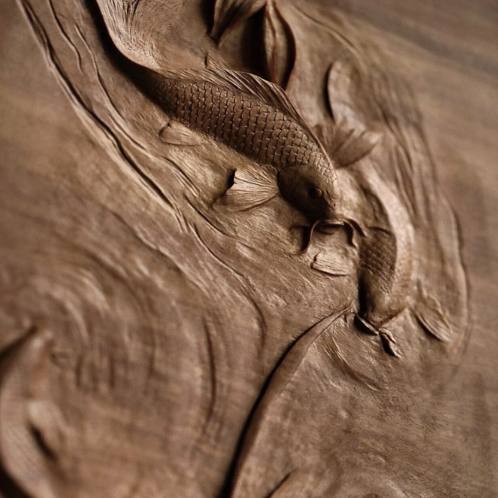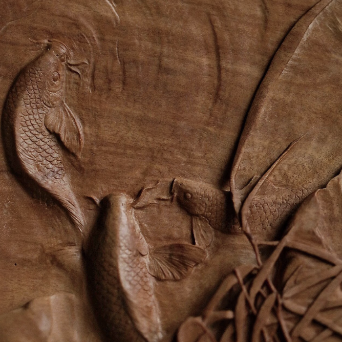 Chạm khắc 3D sắc nét, từng cánh hoa – chiếc lá – đường bay của chim đều mềm mại, có chiều sâu.