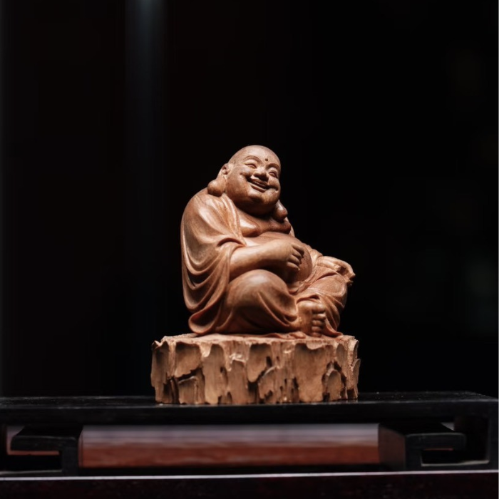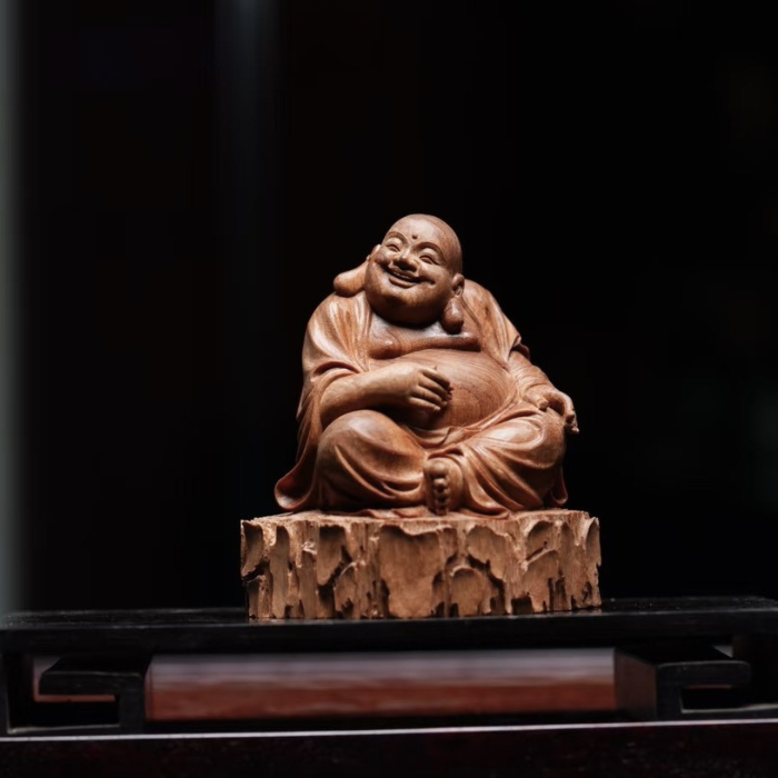 Tượng Phật Di Lặc để xe ô tô được chế tác thủ công từ gỗ tự nhiên, kích thước nhỏ gọn nhưng chi tiết tinh xảo. Đây là linh vật biểu tượng cho hạnh phúc, bình an và tài lộc – rất phù hợp đặt bàn làm việc, xe ô tô hoặc làm quà tặng may mắn.